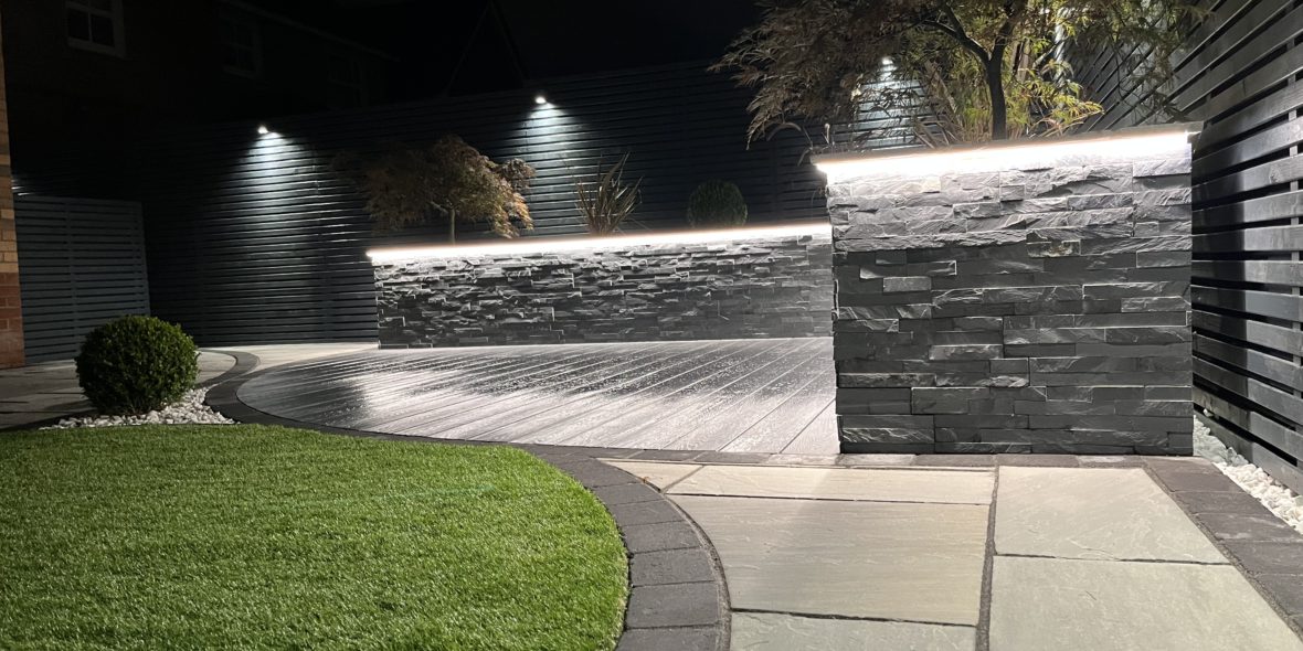 We were now getting close to the finishing line, the artificial grass was installed, planting was carried out, decorative screens were fixed leaving only CS Electrical to install the lighting. Once CS electrical were finished we carried out the final wash down of the project prior to walk round with our client.